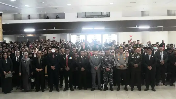 KAREBAKALTIM.com, SANGATTA – Sebanyak 441 Aparatur Sipil Negara (ASN) di Kutai Timur menerima penganugerahaan Satyalencana Karya Satya (SKS) dari Pemerintah RI yang disematkan Bupati Ardiansyah Sulaiman di hadapan Wakil Bupati Kasmidi Bulang, Ketua DPRD Kutim, Joni, unsur Forkopimda, Sekretaris Daerah Rizali Hadi, serta jajaran Pemkab Kutim lainnya bertempat di gedung serbaguna Bukit Pelangi, Rabu (16/8/2023).