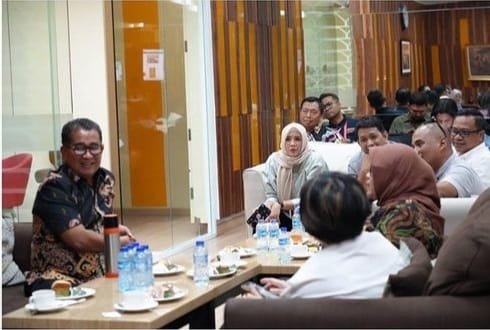 Penjabat Gubernur Kaltim Akmal Malik menyambangi CNN Indonesia yang berada di Kawasan Gedung Trans Media Mampang Prapatan Jakarta Selatan, Kamis 23 November 2023.