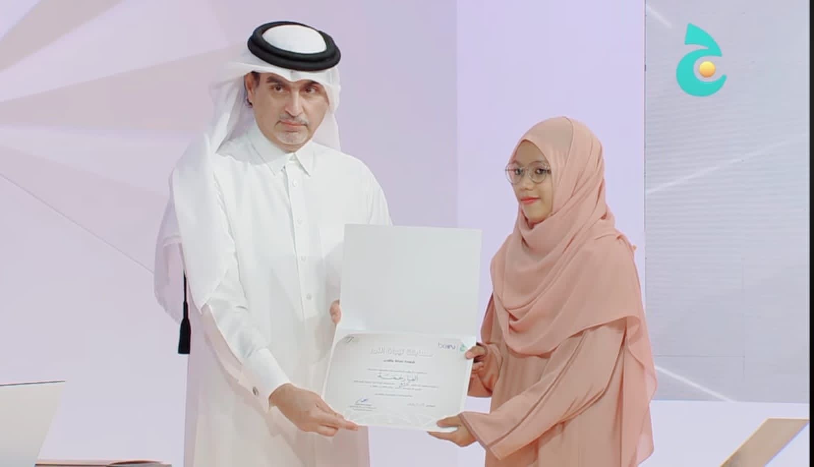 Sebagai apresiasi atas prestasinya, Alfia menerima hadiah sebesar 20.000 riyal Qatar atau setara dengan Rp86 juta.