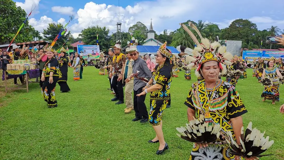 Momen ini terekam saat keduanya menghadiri rangkaian kegiatan kemeriahan panen raya padi di area lapangan Balai Adat Desa Long Lees Kecamatan Busang, Kamis (18/5/2023) yang memang menyuguhkan penampilan bermacam-macam tarian adat dayak.