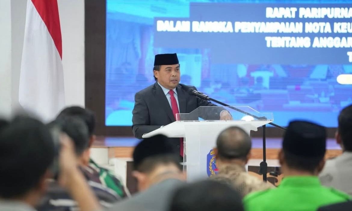 Dalam pidatonya, Wakil Wali Kota Agus Haris menegaskan bahwa Nota Keuangan disusun untuk memberi gambaran kondisi keuangan daerah, kebijakan umum, serta prioritas pembangunan.