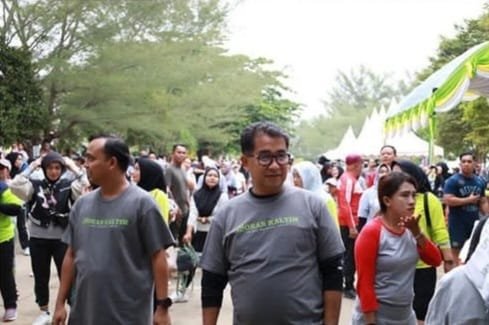 Akmal Malik mengikuti senam sehat serta melepas peserta jalan sehat, sekaligus berjalan bersama dengan masyarakat.