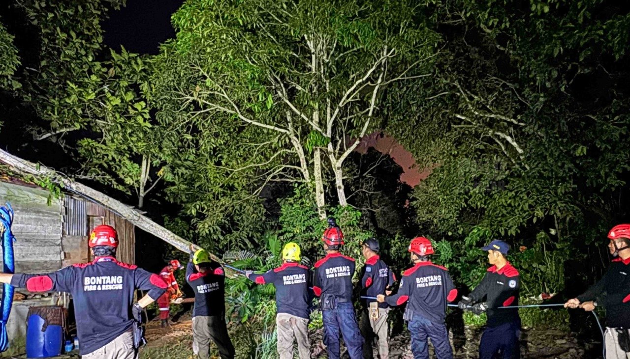 Begitu menerima laporan, Disdamkartan Bontang segera mengerahkan satu unit armada dan 11 personel ke lokasi kejadian. Petugas bergerak cepat melakukan evakuasi material atap yang rusak sekaligus menyingkirkan bagian pohon yang masih menimpa bangunan.