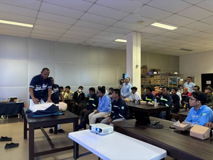 Kegiatan ini bertujuan memperkuat kesiapsiagaan tenaga kerja dalam menghadapi situasi darurat kesehatan di lingkungan kerja.