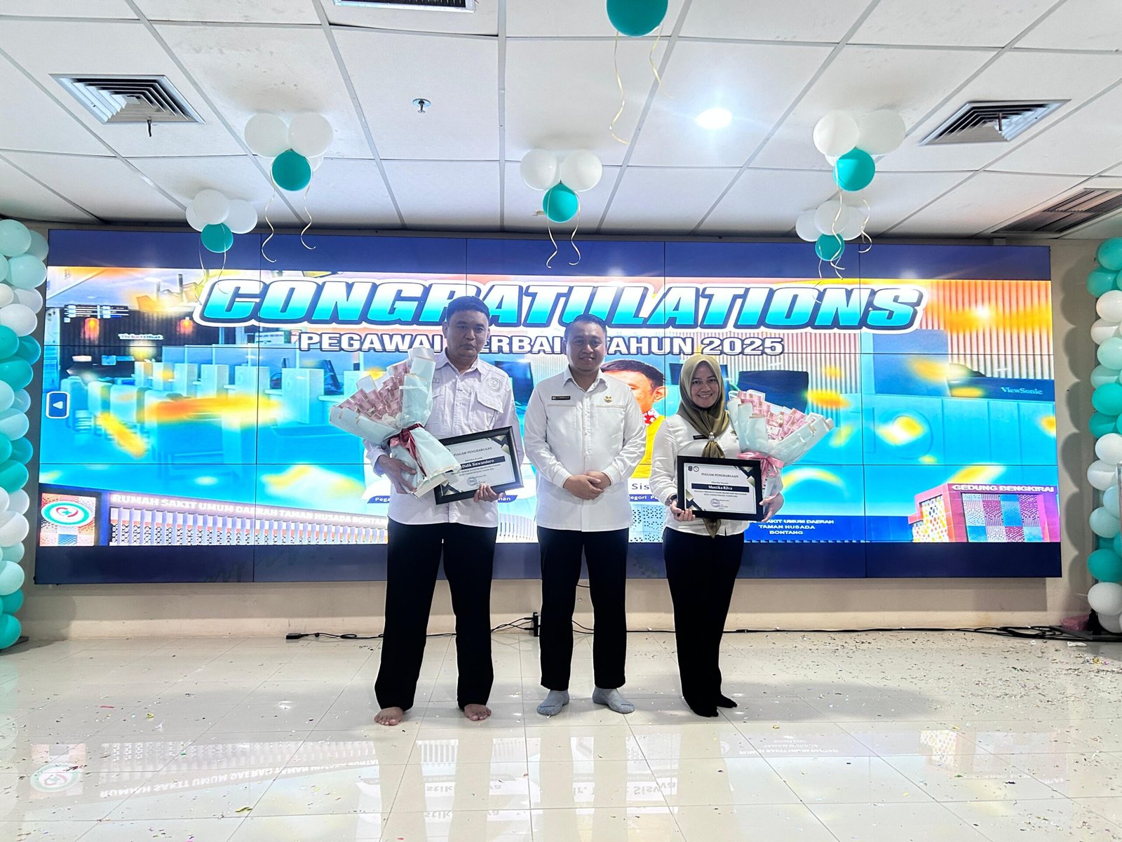Penghargaan tersebut diberikan kepada dr. Didik Siswandoro sebagai pegawai terbaik kategori pelayanan, serta Mustika Rilva sebagai pegawai terbaik kategori non-pelayanan.