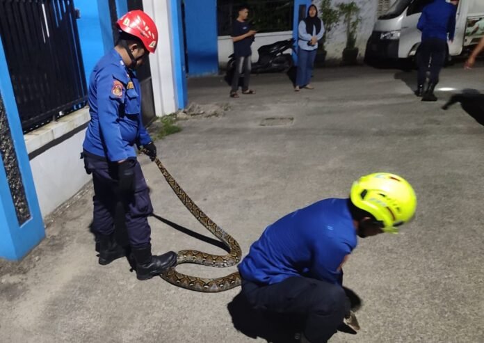 KAREBAKALTIM.com, Bontang – Warga Jalan DI Panjaitan, Kelurahan Bontang Baru, sempat dibuat panik setelah seekor ular piton berukuran besar masuk ke area permukiman pada Selasa dini hari, (4/11/2025).